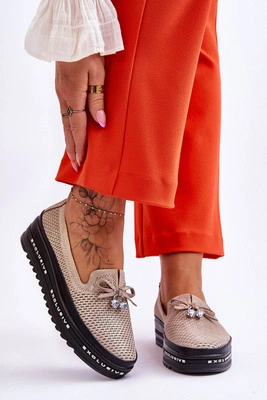 Zazoo 10141 Skórzane Mokasyny Na Platformie Z Ozdobą Beżowe