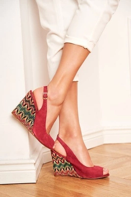 Sandały Damskie Na Koturnie Laura Messi Skórzane Bordowe 1964