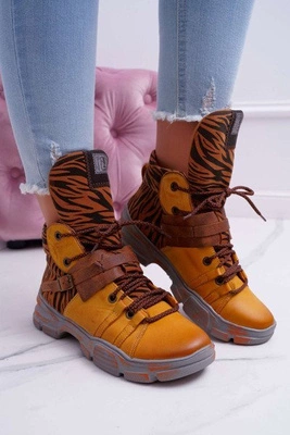Botki Damskie Skórzane Trzewiki Maciejka Żółte 04218