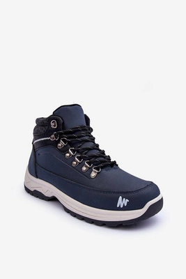 +2Buty Trekkingowe Męskie Ocieplane Granatowo-Beżowe Westtide