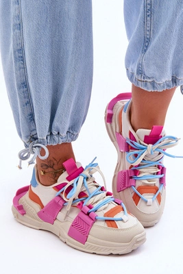 Damskie Modne Buty Sportowe Sznurowane Beżowo-Różowe Chillout!