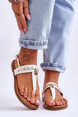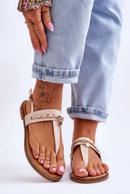 Damskie Sandały Japonki Z Łańcuszkiem Beżowe Jessica