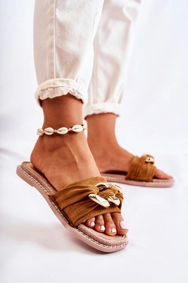 Zamszowe Klapki Z Ozdobnym Łańcuchem Camel Louie