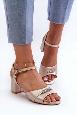 +2Sandały Damskie Na Obcasie Z Eko Skóry Złote Assames