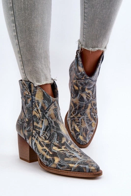 Botki Kowbojki Skórzane Damskie Na Obcasie Maciejka 05776-13 Niebieskie