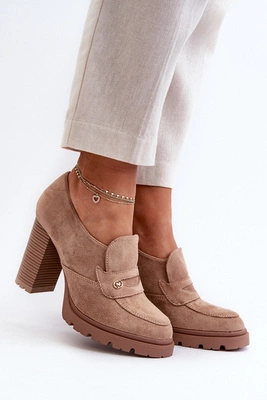 Damskie Półbuty Na Masywnym Obcasie Beżowe Feneli