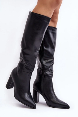 Damskie Skórzane Kozaki Na Masywnym Słupku Czarne Lemar Odennia