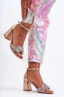 +2Błyszczące Sandałki Na Obcasie Złote Enenor
