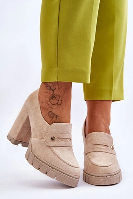 Klasyczne Skórzane Klapki Na Niskim Obcasie Beżowe Miley