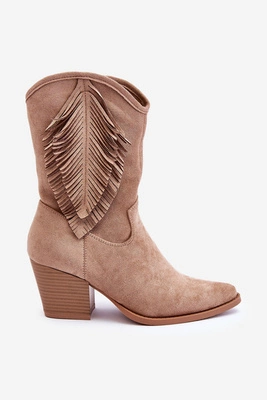 Damskie Niskie Zamszowe Kozaki Kowbojki Beżowe Elyse