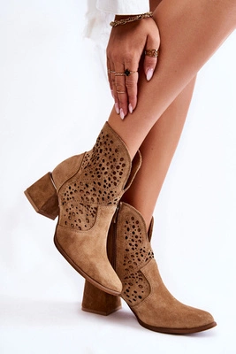 Damskie Zamszowe Botki Na Obcasie Nicole 2757 Beżowe