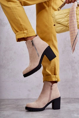 Zamszowe Botki Na Obcasie Z Suwakiem Beżowe Sevione