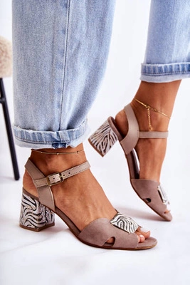 Modne Zamszowe Sandały Na Słupku Beżowe Rovena