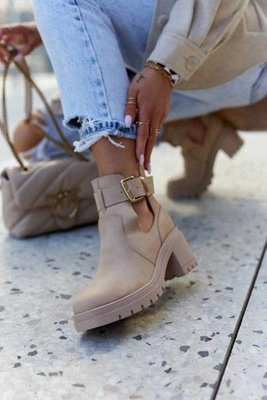Zamszowe Damskie Botki Kowbojki Beżowe Devon