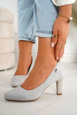 +10Damskie Skórzane Botki Na Słupku Maciejka Jasny Niebieski 04492