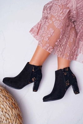 Botki Damskie Na Słupku Sergio Leone W Złote Kwiaty Folk Czarne Eros2