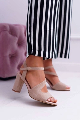 Sandały Damskie Na Słupku Sergio Leone SK868 Zamszowe Beżowe Mersi