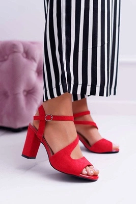 Sandały Damskie Na Słupku Ażurowe Zamszowe Czerwone HiBaby