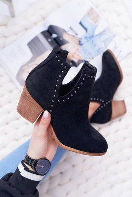 Damskie Botki Czarne na Słupku Zamszowe Egida
