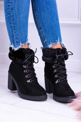 Damskie Czarne Zamszowe Botki Z Futrem Laura Messi 1689