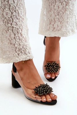 Sandały Damskie Na Obcasie Z Transparentna Cholewką Czarne Aleola