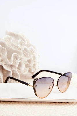 Damskie Okulary Przeciwsłoneczne Z Brokatowymi Wstawkami UV400 Brązowo-Złote