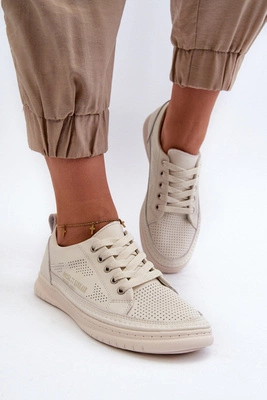 Skórzane Sneakersy Damskie Na Platformie Beżowe Pernalia