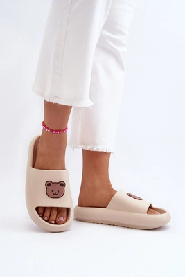 Lekkie Damskie Piankowe Klapki Z Misiem Jasnobeżowe Lia