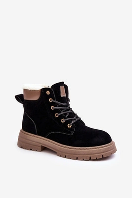 Zamszowe Botki Damskie Na Płaskim Obcasie Czarne Klemovia