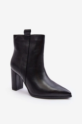 Damskie Skórzane Botki Na Słupku Czarne Vevine