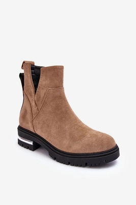 Zamszowe Ocieplane Botki Workery Na Płaskim Obcasie Beżowe Nacelle