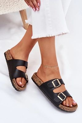 Klapki Damskie Na Korkowej Platformie Z Klamrami Czarne Livara