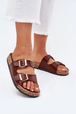 Klapki Damskie Z Klamrami Z Eko Skóry Brązowe Iskira
