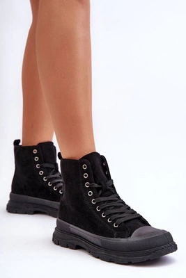 Zamszowe Wysokie Trampki Damskie Czarne Eleamia