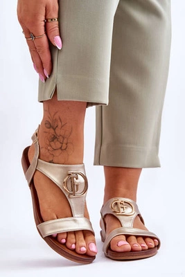 +6Sandały Damskie Płaskie S.Barski KV-541-120 Złote