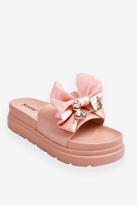 Klapki Z Kokardą I Ozdobnym Misiem Beżowe Suzy