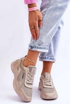 Modne Sneakersy Damskie Na Koturnie Beżowe Jolly