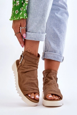 Damskie Sandały Z Cholewką Za Kostkę Camel Adonis
