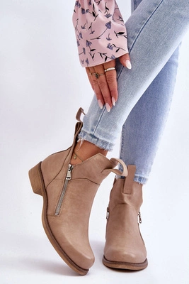 Damskie Skórzane Botki Na Płaskim Obcasie Beżowe Artemis