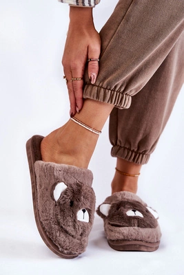 Damskie Futrzane Papcie Z Misiem Brązowe Solly