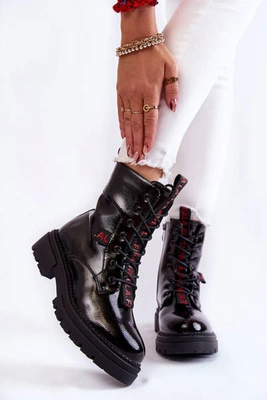 Damskie Kozaki Glany Sznurowane Z Nerkami Czarne Mirrano