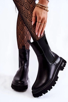Skórzane Ocieplane Botki Glany Big Star KK274486 Czarne