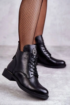 Skórzane Ocieplane Botki Workery Na Płaskim Obcasie Czarne Salome