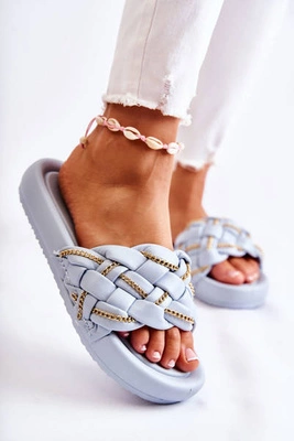 Damskie Klapki Z Ozdobnym Paskiem Niebieskie Ramisa