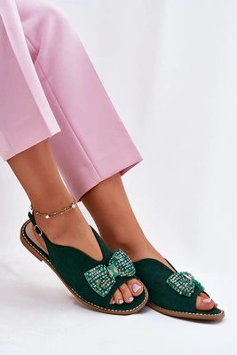 Sandały Damskie Z Kokardą Na Płaskim Obcasie S.Barski KV51-014 Zielone