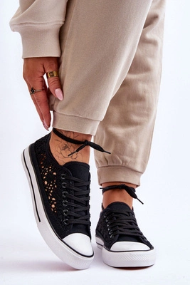 Damskie Koronkowe Materiałowe Trampki Czarne Fergo