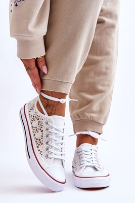 Damskie Koronkowe Materiałowe Trampki Białe Fergo