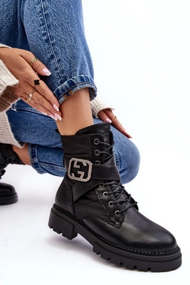 Workery Botki Damskie Z Ozdobą Czarne Toye
