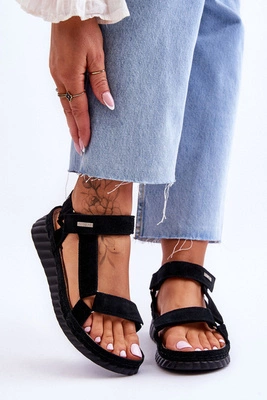 Zamszowe Sandały Na Rzep Big Star LL276011 Czarne