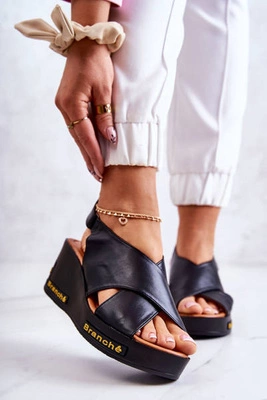 Damskie Wygodne Sandały Na Koturnie Czarne Thallas